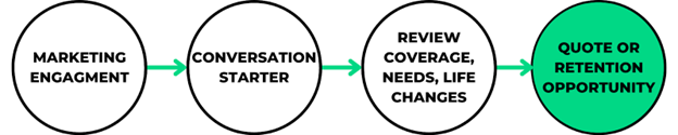 If you and your producers are prepared to have simple conversations and pivot them into sales opportunities, the goal of all your digital marketing can simply be to generate engagement. Then you can use that engagement as the opportunity to create a conversation. Not every marketing campaign will move prospects to the point of a quote request, but you can use your insurance expertise and sales skills to do that yourself, using the marketing engagement as your reason to call.